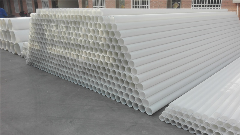 FRPP管材检查井流槽的做法要规范。雨水流槽高度应与主管的半径相平,流槽的形状应为与主管半径相同的半圆弧。由于塑料管道线膨胀系数大,一般为钢材8倍左右。在安装时要考虑热补偿,一般以自然补偿为主.也可采用聚四氟乙烯补偿器,也可采用聚四氟乙烯波纹膨胀节进行补偿。对于架空专用敷设的管道应采用管托支承,管托可用有角钢,对剖的钢管材料,使管道在管托上能自由伸缩,管线支架距离有规定要求。